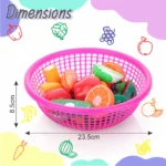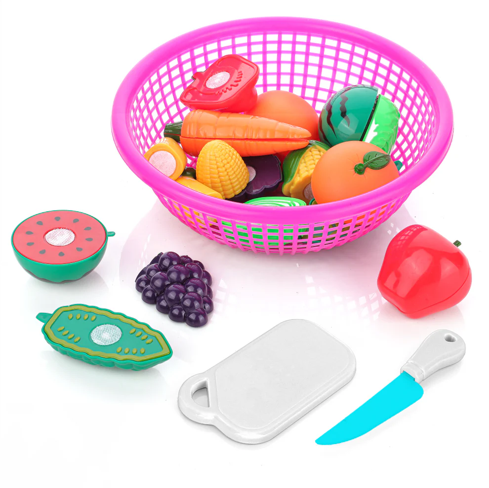 Fruits and Vegetables Set in One Basket with Chopper Board & Knife for Kids, Fruit & Vegetable Combo (Pink Basket)