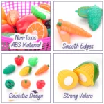 • Realistic Chopping Action: The assorted fruits and vegetables are held together with secure Velcro (or magnets), allowing children to satisfyingly “chop” them apart using the included play knife. They can be easily reassembled for continuous play.